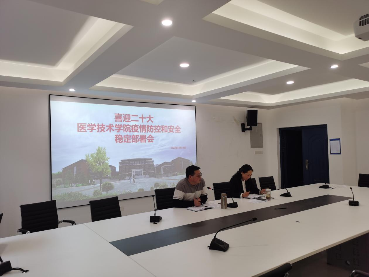 10月13日下午,医学技术学院在学院会议室召开了喜迎党的二十大疫情防控和安全稳定部署会,会议对党的二十大期间学院安全稳定和疫情防控重点工作进行了部署。医学技术学院党政负责人和全体教职工参与此次会议。