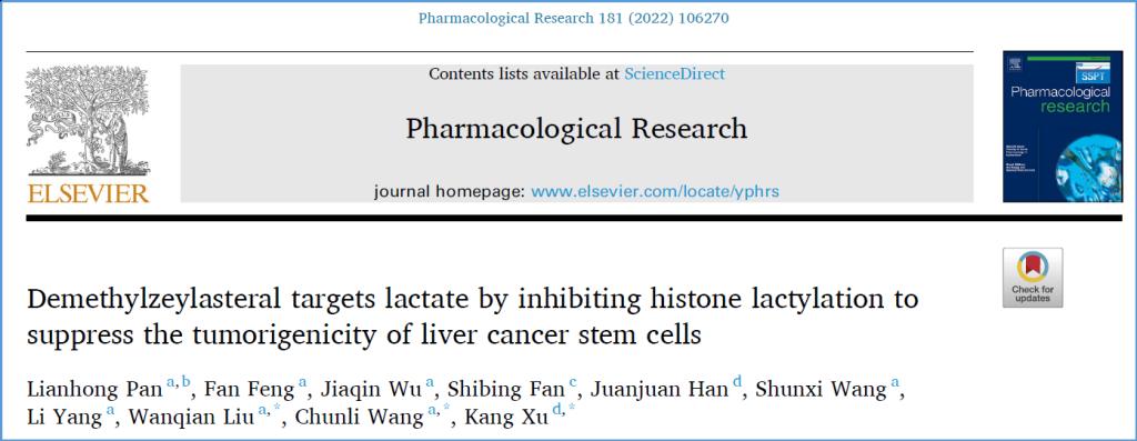 我校基础医学部潘连红博士的研究成果“Demethylzeylasteral targets lactate by inhibiting histone lactylation to suppress the tumorigenicity of liver cancer stem cells”在药学领域知名期刊《Pharmacological Research》(IF=10.334, JCR Q1,Top期刊)上发表。潘连红博士为第一作者,这是学校教师首次在影响因子10.0以上SCI期刊发表论文。