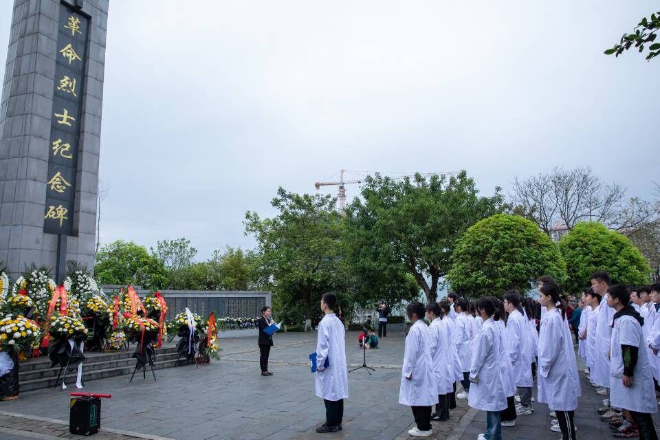4月5日清明节,忠县人民医院党委组织重庆三峡医药高等专科学校基地班全体师生,到乐天公园的忠县革命烈士纪念碑开展“2023·崇尚·清明祭英烈”主题活动,将“思政微讲堂”搬到了纪念碑前,让全体师生受到了一次深刻的思想淬炼和精神洗礼。