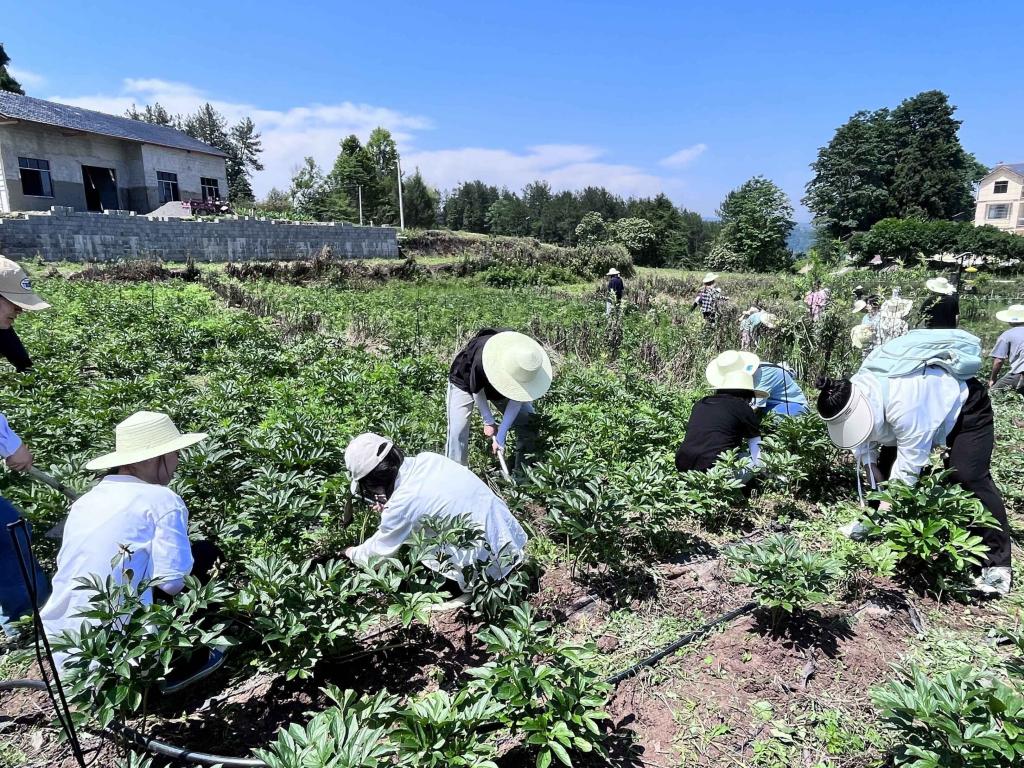 见习的最后两天,团队一行来到学院位于恒合乡石坪村的“三峡中药材种源繁育与示范推广基地”,这是在万州区政府和学校支持下,学院立足专业助力乡村振兴的示范基地,这里种植有灵芝、黄精、芍药等品种共计上百亩中药材,去年创收百万元,有力助推当地产业发展。同学们在这里被分成小组,每组划分一块“责任田”,为自己的责任田展开全方位护理,中药学专业教师陈春宇边亲自示范边悉心指导,同学们用锄头或用手进行除草,松土等,半躬半蹲的在自己的地前忙的热火朝天,经过两天的悉心护理,为自己田里的中药材打造了一个干净的家,躬行践履为药材除草在锻炼体魄的同时也让同学们深刻感受到劳动带来的成就感。