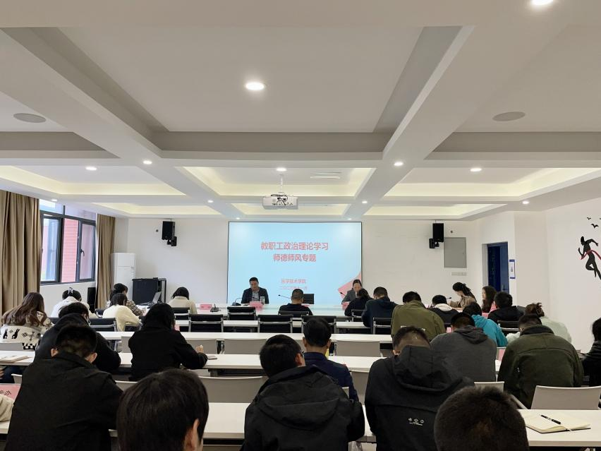 为进一步加强师德师风建设,强化教师职业道德、提高职业素养,按照学校党委《关于开展师德师风专项整治行动的通知》文件精神及要求,11月7日,医学技术学院组织召开了师德师风专题学习会,全体教职工参加。会议由学院党总支书记罗玉琳主持。