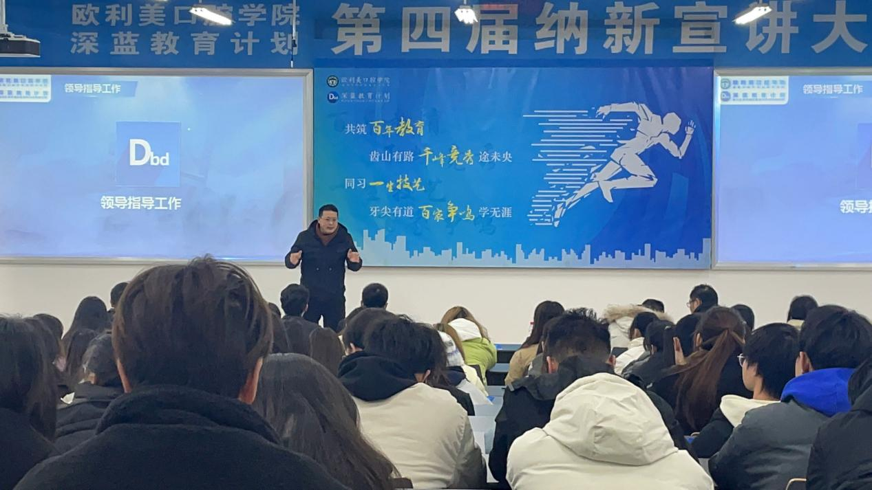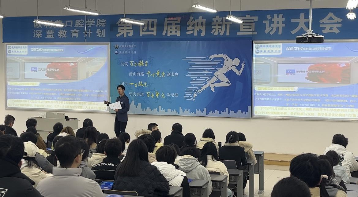 12月22日,医学技术学院在四教603教室举办欧利美口腔产业学院“深蓝计划”第四届纳新宣讲大会,医学技术学院院长郝坡,重庆市秋拓医疗科技有限公司总经理易元,口腔医学技术专业专兼职教师,2023级学生、2022级深蓝学子,深蓝教育团队共200余人参加大会。