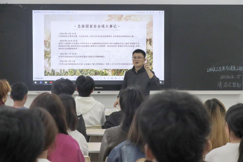 4月15日,学院安全干事在四教603教室开展专题讲座,从国家安全日的由来、什么是国家安全、维护国家安全从你我做起等方面,回顾了习近平总书记提出总体国家安全观以来的发展变化,引导学生深刻感受十年来国家安全工作取得的巨大成就,积极践行总体国家安全观。