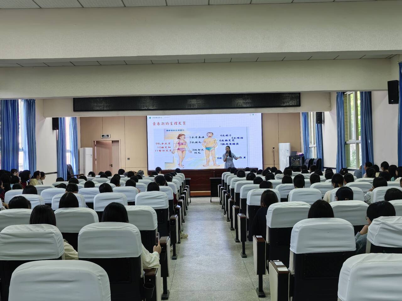 活动现场,科普体验区热闹非凡,同学们踊跃参与。在中药鉴别体验区,薄荷、玫瑰花、菊花等10种常见中药整齐陈列,同学们通过观察外观、辨别颜色、轻嗅气味,认真区分药材并填写体验单,在实践中感受中药的独特魅力;在中药制作体验区,大家化身“小药童”,学习使用中药“戥称”并体验称量饮片,感受传统碾药过程;脉诊仪前,同学们好奇地学习中医切脉,探索神奇的中医诊断方法;八段锦习练区,同学们一招一式尽显青春活力;此外,人体拼装互动、中医方歌背诵等项目也深受学生喜爱。同学们在体验中收获知识,积攒“星章”,兑换亲手制作中药香囊的机会,成就感满满。期间,还针对性地开展了青春期知识专题科普讲座,为女生们科普健康知识,提升自我保护意识,传递关怀与温暖。