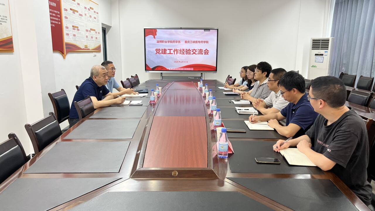 为深化校际合作,探索党建引领事业发展新路径,6月 11日,山东省淄博职业学院药学系党支部书记王松率队一行 2人到访我校药学院,开展党建座谈交流活动。药学院党总支书记董江峡、副院长蔡兴东及各支部书记热情接待,双方就党建与专业发展展开深入研讨。