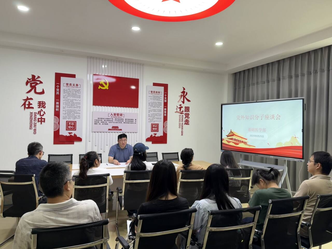 为贯彻落实新时代党的统一战线工作,不断夯实统战工作基础,全面贯彻落实党的人才政策和知识分子工作方针,进一步加强与党外知识分子之间的紧密联系与沟通交流。6月25日,基础医学部在303会议室召开党外知识分子座谈会。基础医学部直属党支部书记李国利以及11名党外知识分子参加会议,会议由李国利主持。