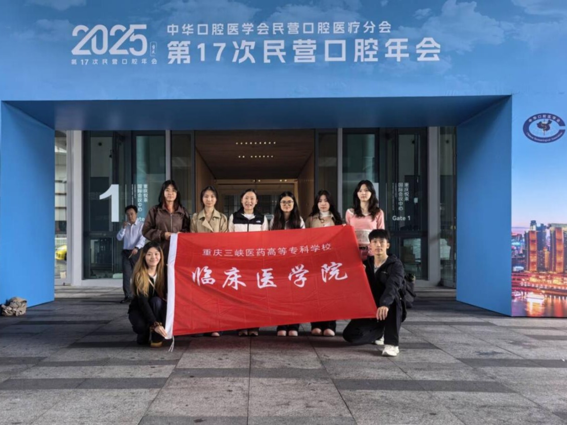 2025年10月20-22日,中华民营口腔医学会第17次民营口腔年会在重庆悦来国际会议中心举行。为深入了解口腔行业发展趋势,推动口腔专业人才培养与就业市场需求精准对接,开展2026届毕业生就业指导,临床医学院党总支专职副书记闫丽丽、学院就业干事、专业教师姜浩丰、杨婧、就业干事吴丹丹、毕业班辅导员等一行6人组队参会。42名26届口腔专业毕业生和7名会场志愿者也一同参会。