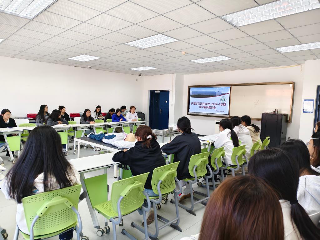 10月28日,护理学院在B5-414召开2025-2026学年第一学期学习委员座谈会。学院副院长邓菲菲、实训中心主任张利、教学干事丁时青、考务干事孙红珊以及51个在校班级学习委员参会,会议由丁时青主持。