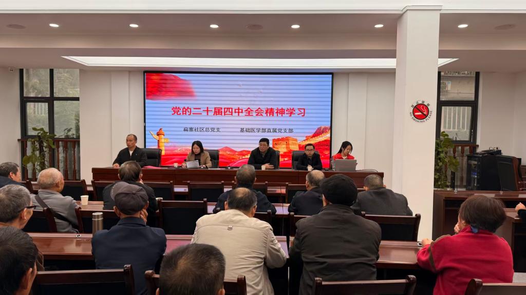联建活动设置了以基层党组织的建设为主题的座谈会和科普义诊两个模块。座谈会上,首先由扁寨社区党总支书记柳彬领学党的二十届四中全会精神,与会党员纷纷表示,要把学习好贯彻好全会精神作为当前和今后一个时期的重大政治任务。随后两支部成员就党建联建的具体内容进行发言与讨论,同志们表示,通过共同开展主题党日活动、互派党员交流学习等方面进行深度、切实的联建,最终确定了联建协议,进行了协议签约仪式。科普义诊模块由袁云川医生向社区居民讲解了老年病预防和护理的健康知识,由学生志愿者为社区居民开展了艾灸、量测血压等活动,助力健康科普。