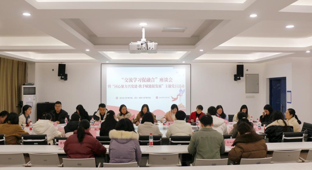 为深化校际共建与全面融合,推动护理教育高质量发展,12 月 3 日下午,重庆三峡医药高等专科学校护理学院与重庆医药高等专科学校护理学院联合举办“交流学习促融合”暨“同心聚力兴党建・携手赋能促发展”主题党日活动。两校护理学院党总支委员、党建工作骨干及全体专职辅导员齐聚三峡医专护理学院,以座谈交流、实地观摩等形式,共话党建创新路径,共研辅导员队伍建设,共探融合发展新篇。交流座谈会在三峡医专护理学院 B6-315 会议室正式召开,会议由三峡医专护理学院党总支专职副书记覃艳主持。