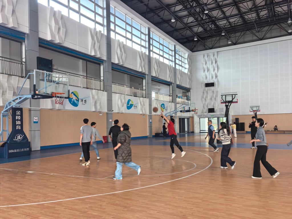 本次比赛创新采用了男女混合组队的形式,不受传统篮球规则限制。赛场上,由教职工们组成的两支队伍展开了友好而激烈的角逐,队员们攻防有序,默契配合,场边助威声与欢笑声不绝于耳,充分展现了学院教师们的活力与风采。