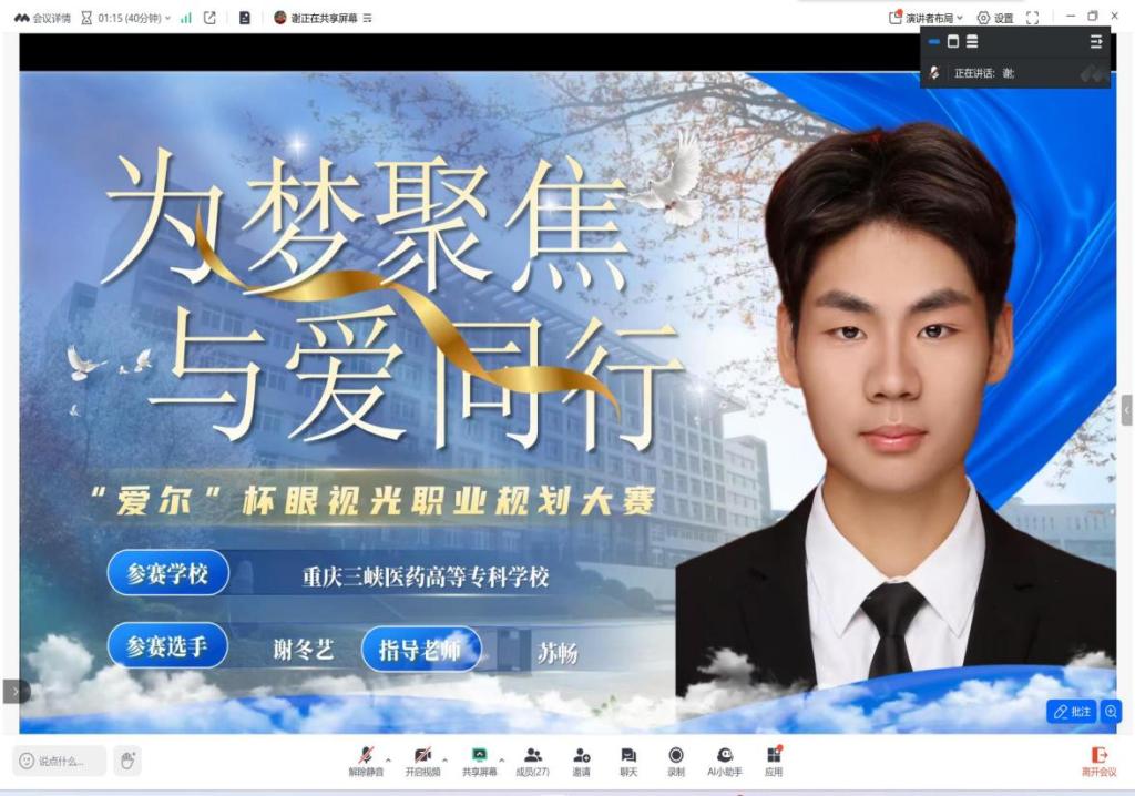 1月13日,由学校与爱尔眼科医院联合主办的“爱尔杯”眼视光职业规划大赛决赛顺利举行。大赛以深化产教融合为导向,旨在引导学生树立科学的职业规划意识,并为眼视光行业培养与储备应用型专业人才。
