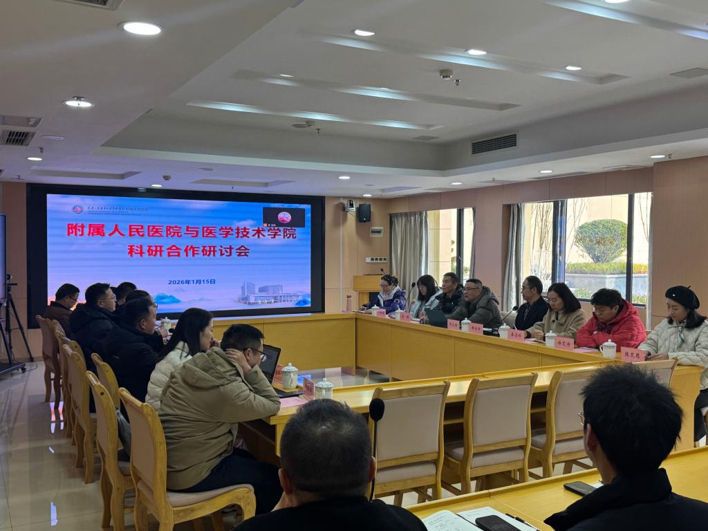 为深入落实党建引领科研工作要求,打破院校科研资源壁垒,推动基础研究与临床应用深度融合,1月15日下午,学校医学技术学院与附属人民医院在医院高笋塘院区1711会议室成功召开科研合作研讨活动。医学技术学院院长郝坡、副院长蒲永莉、副书记张远理及博士团队,附属人民医院党委书记赖登祥、副院长朱文胜、相关学科带头人及医务人员代表等出席会议,会议由朱文胜主持。