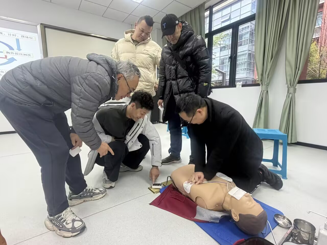 实操演练环节中,参训人员借助专业模拟设备,全面开展心肺复苏按压、人工呼吸、AED电极贴附及放电操作等全流程练习。刘春梅、王春霞两位老师全程巡回指导,针对参训人员在按压姿势、动作幅度、设备操作等细节中存在的问题逐一纠正,帮助大家快速找准操作要点。公共基础部赵炎老师作为参训代表进行现场操作展示,其动作标准规范、流程衔接顺畅,充分展现了本次培训的即时成效。参训教职工纷纷表示,此次培训内容紧贴实际需求,指导性与实用性极强,不仅系统掌握了AED与心肺复苏的核心技能,更有效克服了“不敢救、不会救”的心理障碍,提升了应对突发状况的自救互救信心与应急处置能力。
