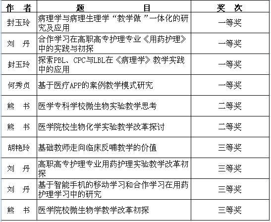 根据重庆市万州区职业教育学会《关于开展2015年度职业教育研究学术论文评选工作的通知》(万职学会[2015]2号)文件精神,2015年11月,高教所组织了论文的评选推荐工作,我部教师积极参与论文评选。2016年3月,接万州区职业教育学会《重庆市万州区教育学会关于2015年度职业教育科研论文评选结果的通报》(万职学会〔2016〕1号)文件通知,我部共有10篇论文获奖,其中一等奖4篇、二等奖2篇、三等奖4篇。具体名单如下: