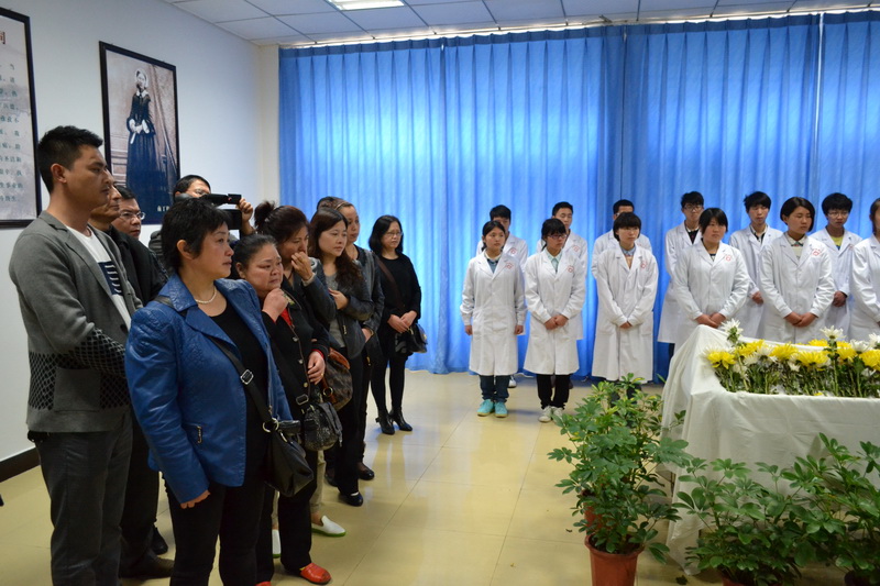 莫悠成功捐献器官后,“三峡库区遗体捐献接受站”工作人员携同逝者遗体及其家属来到我校。应家属要求,对莫悠进行遗容整理后,“遗体捐献接受站”工作人员、逝者家属、20名学生代表在敬捐室为其举行了简单而庄重的遗体告别仪式。完成我校首例遗体捐献接收工作。目前,工作人员正在进行遗体后期处理相关工作。