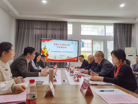 会上,李国利对张德兵一行的到来表示热烈的欢迎,并简要介绍了基础医学部直属党支部的基本情况。张德兵对我部的热情接待表示感谢,介绍了附属中医院党建工作基本概况,并高度赞赏了我部在党建品牌、团队建设、课程育人、科研创新、“双创”育人、党建辐射效应等方面的创新成果。他表示基础医学部直属党支部在支部建设中形成了深厚积淀和光荣传统,近年来实现了第三批国家级样板支部创建单位、重庆市“双带头人”工作室等高质量发展。本次调研旨在学习我支部在品牌打造、团队建设等方面的成功经验,进一步推进医院与学校的交流合作,共同提高支部建设质量。随后,双方围绕如何将党建工作与医疗服务相结合、如何在医护人员中培养党性修养、以及如何通过党建活动提升医务人员的职业素养等议题进行了深入探讨。附属中医院党支部代表深受启发,纷纷表示将把学习到的宝贵经验和先进理念带回医院,结合医院实际,创新党建工作模式,将党建工作与医院管理、医疗服务、科研教学等深度融合,助力医院各项事业再上新台阶。
