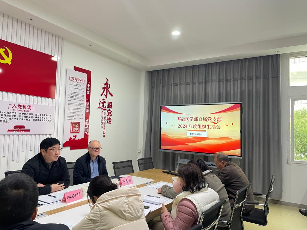基础医学部直属党支部于3月4日在基础医学楼303会议室召开党员大会,开展专题组织生活会和党员民主评议。会议由支部书记李国利同志主持。