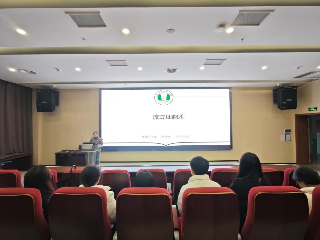 3月13日,基础医学部张溪洋老师在新图书馆B201学术报告厅开展了题为“流式细胞术”的专题讲座,学校30余名教师参加。