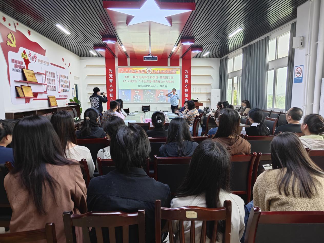 为深入贯彻落实“人人参与消防,共创平安和谐家园”的消防安全理念,进一步提升师生的消防安全意识和应急处理能力。4月29日,基础医学部邀请重庆市利民防火中心黎教官到校为部门全体教师开展了消防安全专题培训活动。此次培训旨在强化校园安全管理,为师生营造安全、和谐的学习与工作环境。