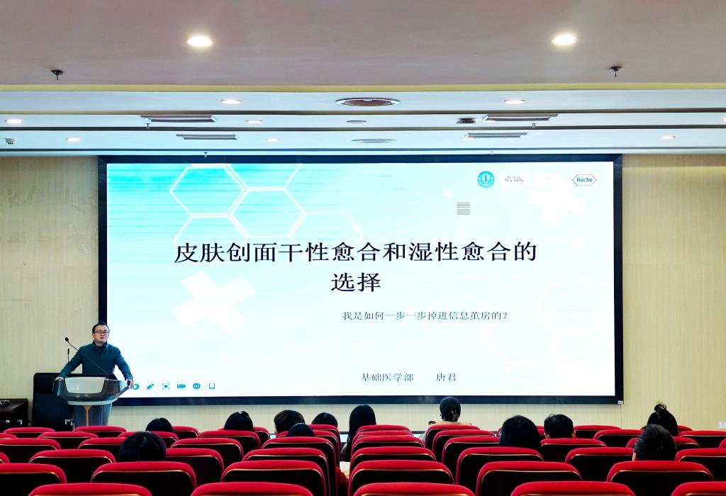 为帮助教师深入了解皮肤创面护理知识,掌握干性愈合与湿性愈合的科学选择方法,基础医学部于10月27日在图书馆B201举办了“皮肤创面干性愈合和湿性愈合的选择”的专题讲座。本次讲座由唐君老师主讲, 20 余名教师参加。