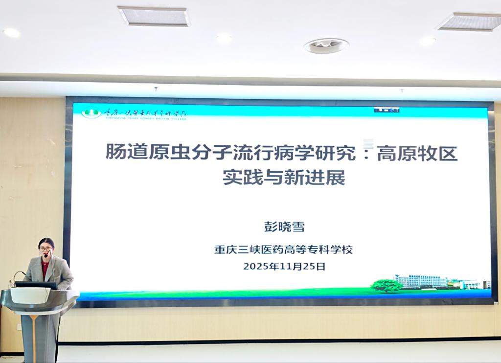 为提升教师对人兽共患病前沿研究的认知,11 月 25 日,基础医学部在新图书馆 B201 会议室开展题为“肠道原虫分子流行病学研究:高原牧区实践与新进展” 的讲座。讲座由彭晓雪老师主讲,20 余名教师参与。