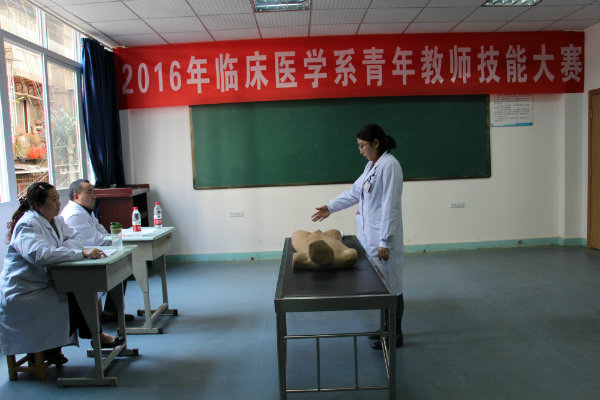 为强化我系青年教师实践教学技能,进一步培养我系青年教师教学实践能力,临床医学系于2016年3月26日,在附属医院临床实训中心开展了 “2016年青年教师技能大赛”。比赛遴选出我系近3年新进教师近20名参赛选手参加角逐,完成执业资格考试大纲中的6项核心技能的操作,包括心脏查体、胸肺检查、神经系统查体、心肺复苏、穿脱手术衣及戴手套、胸腔穿刺。各教研室主任、科室主任担任比赛评委。