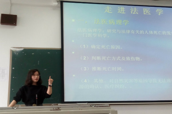 此次讲座,秦鑫警官从法医学的概论、法医学案例分析、等方面为大家进行了介绍。在进行案例分析时,秦鑫警官为同学们展示的各种在办案中真实的图片和视频资料。将现场法医的职责、内容、特点、临案思维及解析、需具备的知识结构进行了很好的诠释,为大家献上了一份法医学学术大餐,极大的震撼了在场的师生,大家都惊叹法医工作的专业性和神圣性。同时,她还幽默通俗地为大家讲解了一些自己从事法医工作的囧事和乐事,为大家揭开法医这一职业的神秘面纱,使大家对法医工作有了更为全面和专业的认识。