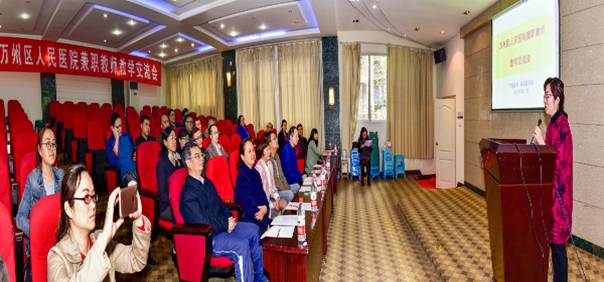 龙院长最后总结陈词,认为这是一次别开生面的集体教研活动。对试讲教师的热情参与、充分准备和良好展现给与了充分的肯定。龙院长讲到,万州区人民医院与附属医院的关系源远流长,希望两院在教学、临床和科研等方面多交流、多合作,多给与我院指导。对试讲教师的不足之处,龙院长也一一点明,希望两院教师以后互相学习,共同进步。