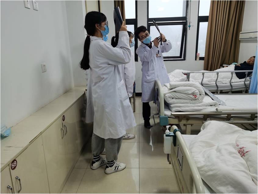 来到基层医院后,同学们惊叹不已,宽敞明亮的工作环境、崭新的医疗器材,与心目中破旧、落后的乡镇卫生院有着天壤之别。大家跟随带教老师查房、与病人交流,查看典型病例,了解基层医院就诊流程、常见病种等,深切地理解到基层医生需要培养全科理念、需要提高全科技能,也深深地感受到了基层医疗工作者身上肩负的重担。