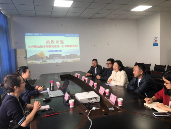 10月17日下午,达州职业技术学院临床医学院党政办主任刘梅、内科教研室主任杨鹏、内科教研室骨干教师张毅、余香、外科教研室骨干教师何青松一行到我院交流临床医学专业群建设与发展,交流座谈会在学院会议室408举行,临床医学院副院长张冬梅、蒲永莉参加交流座谈会。