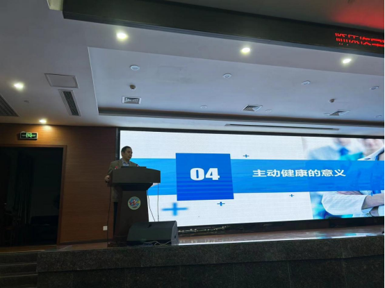 课堂中,赖登祥围绕“健康中国,我在行动”主题,从“健康的定义与标准”、“健康中国面临的问题和挑战”、“《‘健康中国2030’规划纲要》”、“主动健康的意义”四个方面展开讲解。赖登祥以幽默风趣的讲解方式,生动形象地阐述了健康对于人民以及卫生事业的重要性,并通过现场互动让同学们更加深刻地理解健康的意义。最后,赖登祥呼吁同学们打牢医学基础,牢记建设健康中国的使命,培养自主自律的健康行为,努力提高身体素质,将疾病的治疗转变对健康的追求,推进“健康中国2030”目标的实施。