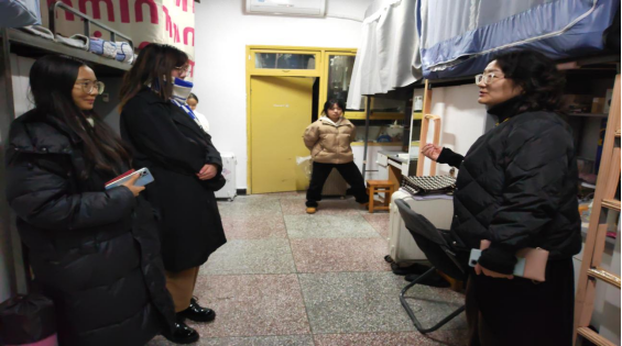 走访学生宿舍,提醒同学们要注意防寒保暖,加强对流行性感冒和病毒感染的预防。建议大家适时增加衣物厚度,保持室内通风,勤洗手,注意个人卫生,共同维护宿舍的健康环境。