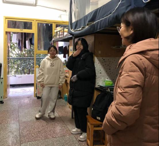 为了解学生们的日常生活,张永慧走进食堂了解菜色、询问价格,关切同学们最关心的吃饭问题。随后,她进入学生宿舍,了解同学们来自哪里、宿舍生活还习不习惯,叮嘱大家要吃饱穿暖,认真复习,用饱满的状态迎接期末考试。