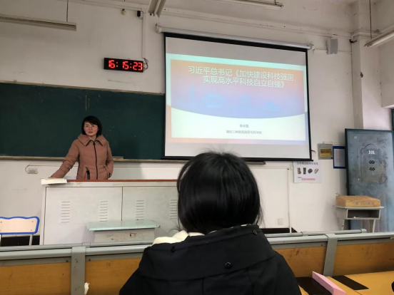 班会上,张永慧给8班的学生们讲解了以《加快建设科技强国,实现高水平科技自立自强》为主题的形势与政策课,从习近平科技创新重要论述、新时代科技创新取得的新的历史性成就、加快建设科技强国的重大意义和实现高水平科技自立自强的重点任务四个方面给学生们开展了一堂别开生面的形势与政策课程,学生们表示受益匪浅,拓展了眼界。