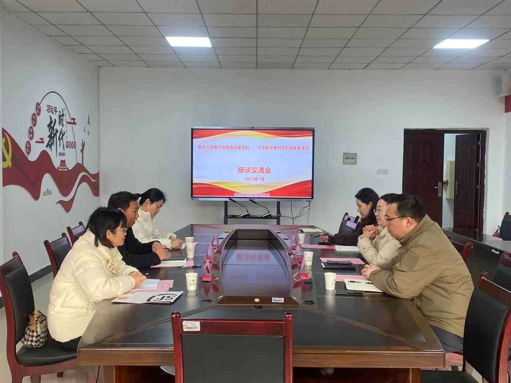 为提升高职临床医学专业教育教学水平,促进专业建设与发展,2025年1月11日,菏泽医学专科学校赵文星一行4人到我院交流座谈。学院副院长张冬梅、党政办及教务科相关老师参加,会议由张冬梅主持。