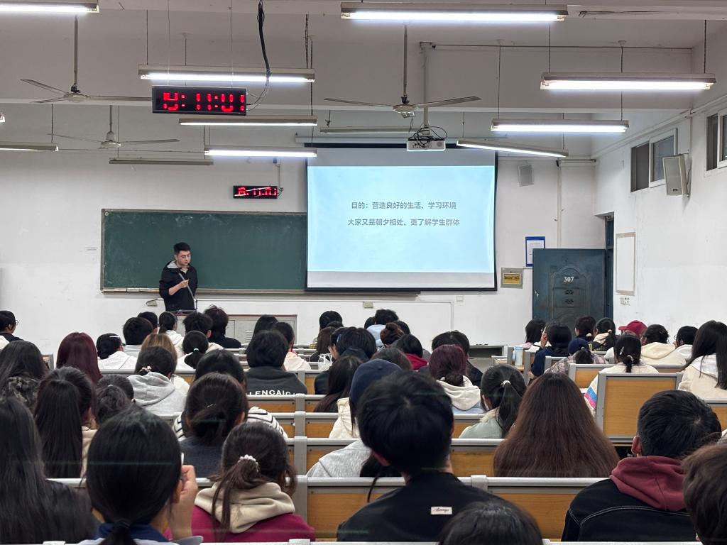10月30日晚,临床医学院2025级安全委员暨宿舍长培训会在一教307举行,旨在切实强化学生骨干安全管理意识,明确工作职责,为全院学生营造安全、有序的生活与学习环境,学院安全干事陈海兵、2025级各班安全委员、宿舍长共计120余人参加了培训。