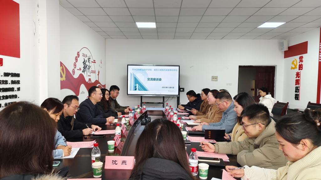 2025年12月1日,苏州卫生职业技术学院临床医学院副院长林清队到我校开展专业建设与人才培养专题交流。来访专业涵盖临床医学、智能医疗装备技术、医学影像技术、中医学、康复治疗技术等。我校临床医学院、医学技术学院、中医学院相关负责人及教师代表共同参会。