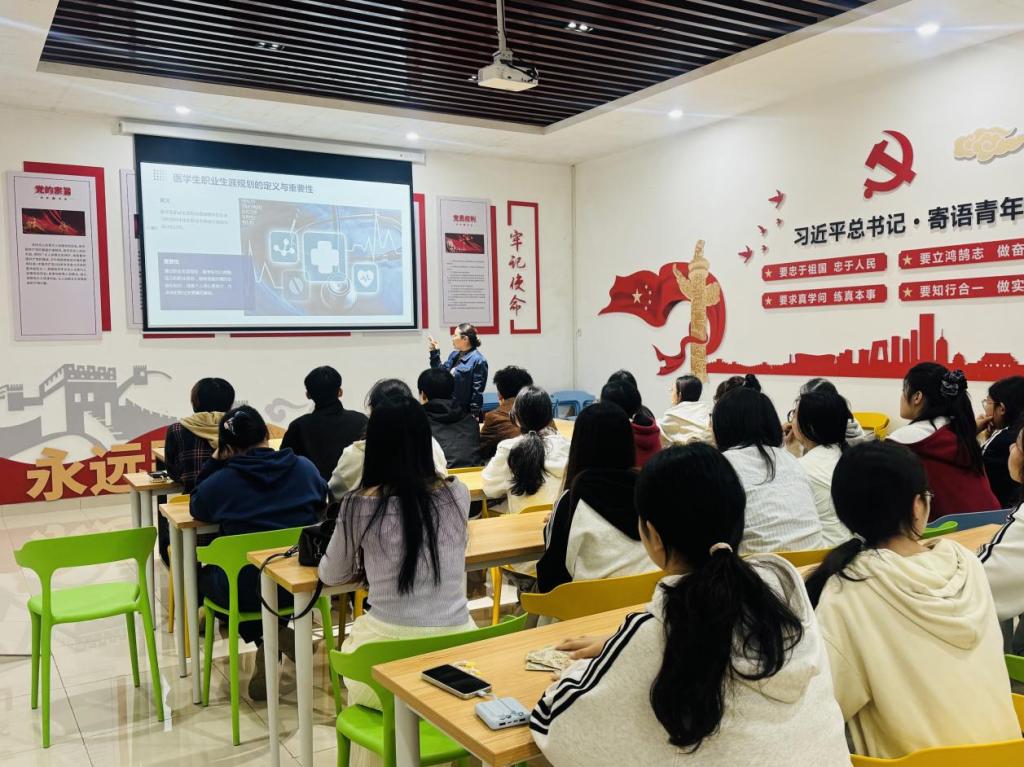 活动现场,张冬梅结合自身深耕临床教学一线的丰富经验,以任课教师与行业前辈的双重身份,围绕临床专业职业成长规划展开深入分享,用通俗易懂的语言拆解专业学习重点、解读行业发展趋势,为同学们搭建起理论与实践衔接的桥梁。分享结束后,现场学生踊跃提问,围绕临床综合思维能力提升、学业深造路径选择、就业方向规划等核心问题与张院长深入交流,充分展现出我院学子勤于思考、乐于钻研、积极进取的良好精神风貌,也进一步强化了自身自主学习、终身学习的责任意识。最后,张冬梅对同学们寄予殷切期望,鼓励大家要开阔学术眼界、深耕专业知识,充分利用学校与学院的优质资源,不断拓宽专业学习路径;要坚定专业信念、增强职业认同感,脚踏实地、精益求精,在专业学习中锤炼过硬本领,为未来投身医疗卫生事业、守护人民健康打下坚实基础。
