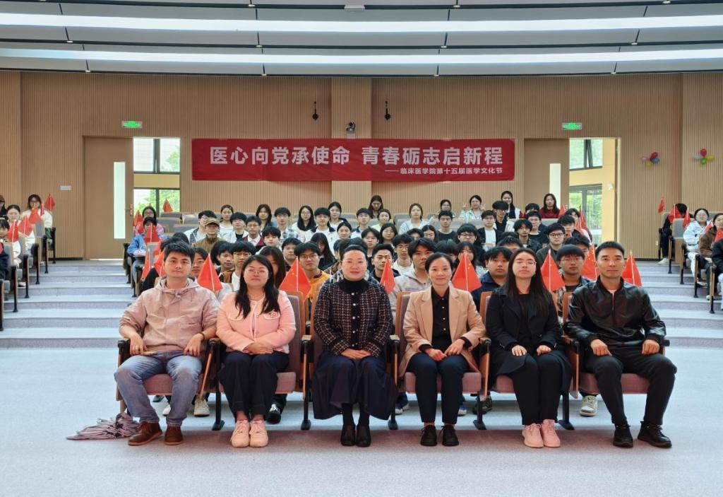 为深入贯彻落实健康中国战略部署,大力弘扬新时代医疗卫生职业精神,厚植医学生家国情怀与责任担当,4 月22日,临床医学院第十五届“医心向党承使命,青春砺志启新程”医学文化节开幕式在二教报告厅顺利举行。临床医学院院长张冬梅、专职副书记闫丽丽出席活动,学院全体教师及学生代表共计200余人参加。