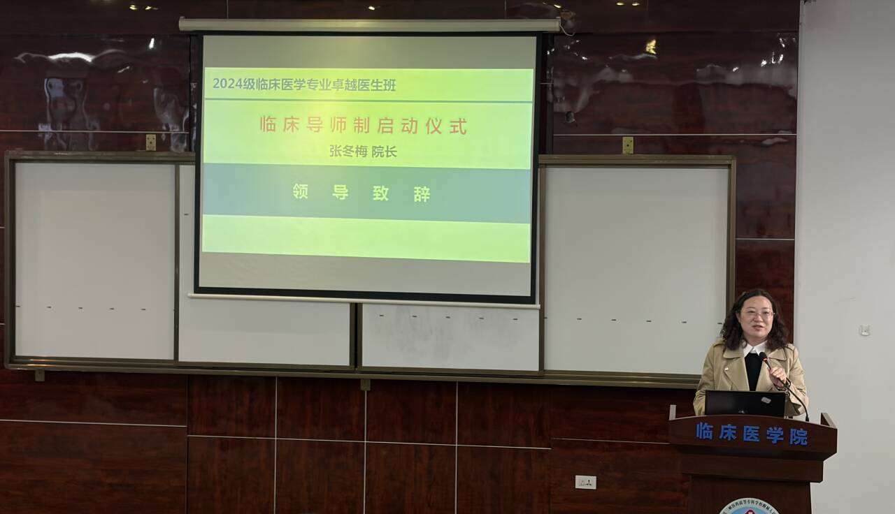 院长张冬梅首先致辞,她深刻阐述了临床导师制是推进临床卓越医生班人才培养模式改革的重要环节,希望导师们切实履行责任,用心用情指导学生;希望同学们主动融入、勤学善问,在导师的引领下夯实专业基础、规划职业路径,努力成长为有温度、有担当的医学人才。