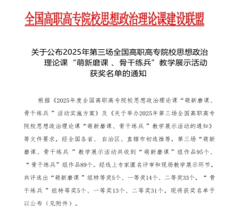 喜报!学校在2025年全国高职高专院校思政课“萌新磨课、骨干练兵”教学展示活动中喜获佳绩