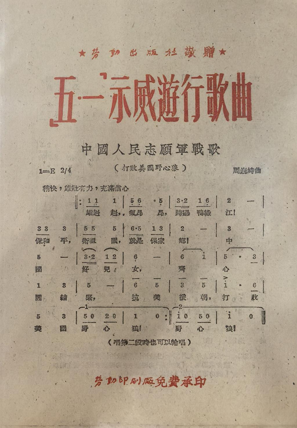 今年88岁的江苏扬州王安珠先生,是一位曾驻守朝鲜的中国人民志愿军老兵。他珍藏着一件1951年为五一劳动节游行而油印的《中国人民志愿军战歌》歌谱。