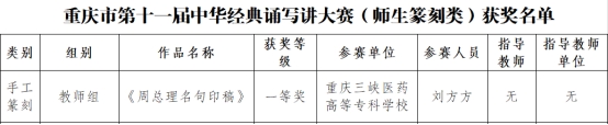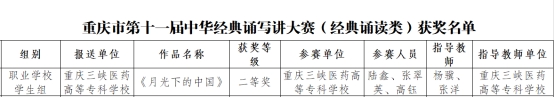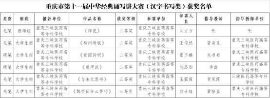 近日,在重庆市第十一届中华经典诵写讲大赛中,我校选送的10件师生作品在全市近3000件作品中脱颖而出,获得一等奖2项,二等奖5项,三等奖3项,其中8项作品入围国赛。