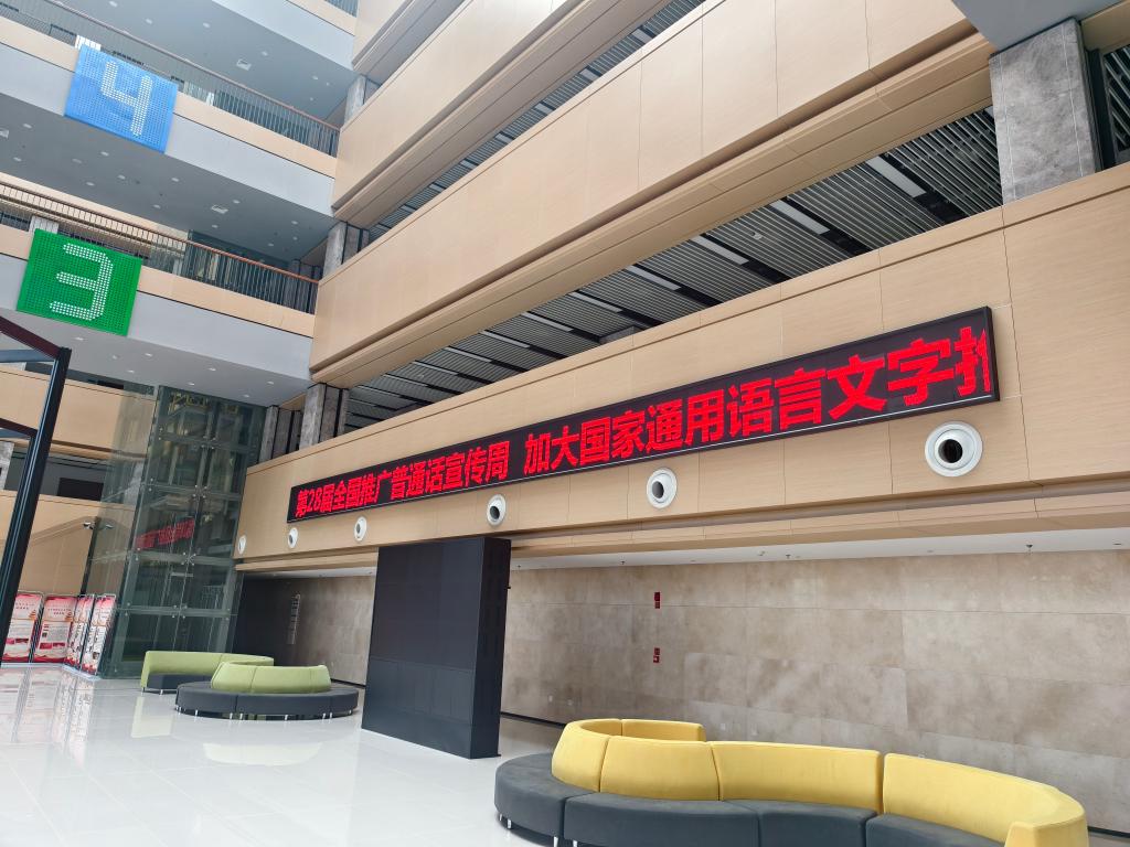 图一:图书馆滚动播放宣传标语,切实做好推普宣传工作
