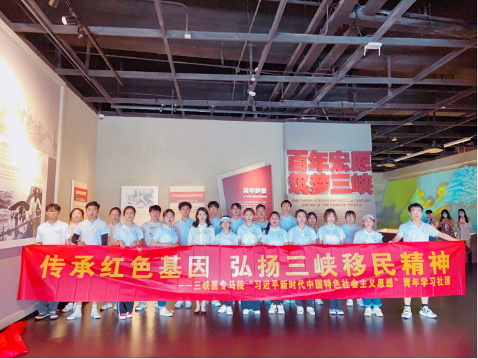 学史以明志,鉴往而知来。为进一步推动我校“习近平新时代中国特色社会主义思想”青年学习社团广大社员学习“四史”的积极性, 2022年4月22日下午,马院思政课教师谭玥带领社团学生在重庆三峡移民纪念馆开展了“传承红色基因,弘扬三峡移民精神”社团实践活动。