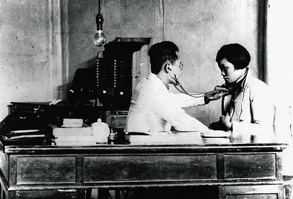 在浙江金华酒坊巷里,台湾医院的医生在为病人诊治