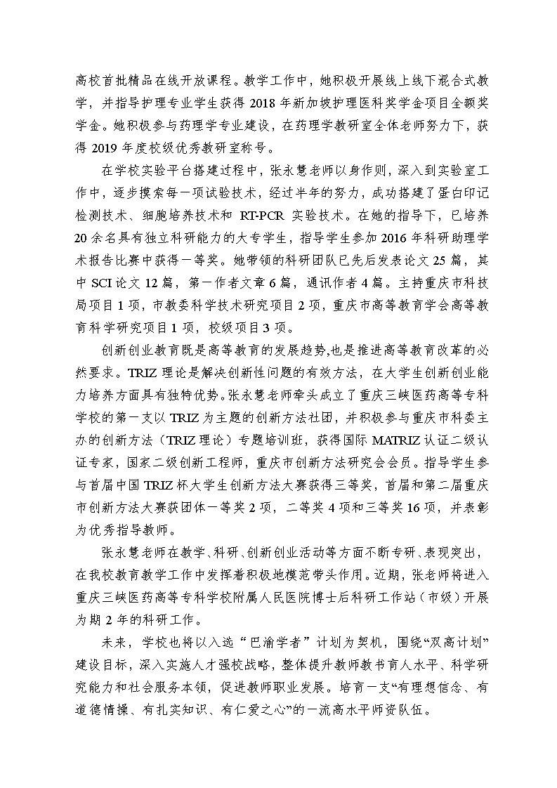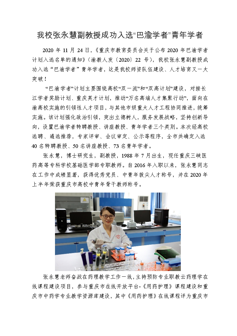 我校张永慧副教授成功入选“巴渝学者”青年学者