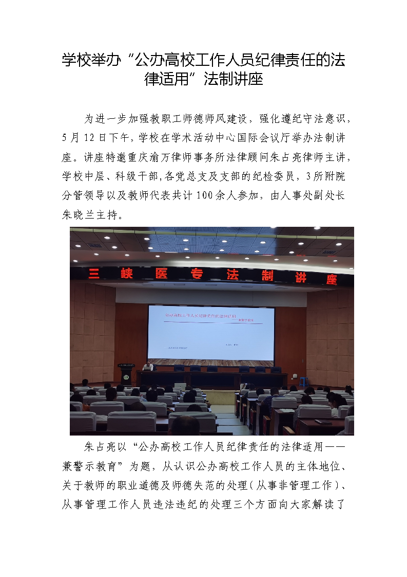 学校举办“公办高校工作人员纪律责任的法律适用”法制讲座