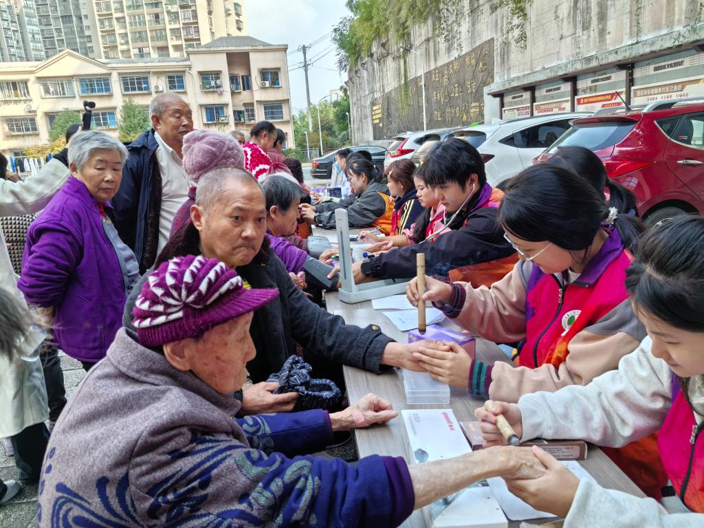 在健康知识讲座中,主讲人袁云川用通俗的语言、生活的实例,向居民讲解了常见疾病的预防与日常保健要点。现场听众认真聆听、积极互动,在有奖问答环节中热情参与,气氛活跃。中医药体验区同样人气十足。大家在专业人员指导下,亲身体验推拿、艾灸等传统中医技法,近距离感受中医药文化的独特魅力。义诊区也排起了长队,志愿者们为居民测量血压,医生们耐心问诊并解答居民的健康问题,并给予个性化的健康建议。科普互动打卡区更是热闹非凡。居民通过扫码答题、参与科普游戏等方式赢取礼品,在轻松氛围中学习健康知识,增强自我保健意识。